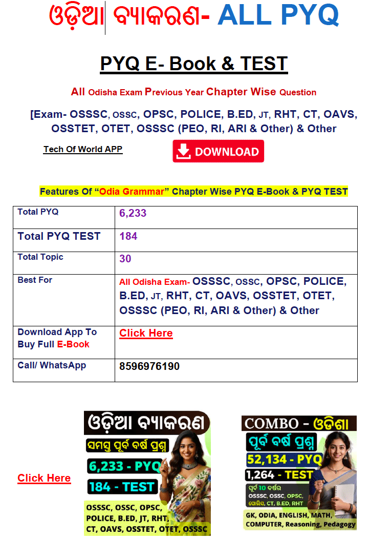 J- ODIA GRAMMAR PYQ (6,233 PYQ + 184 PYQ TEST - All Odisha Exam Previous Year Chapter Wise Odia Grammar Questions- 2012 to 2024)- E-Book & Mock Test